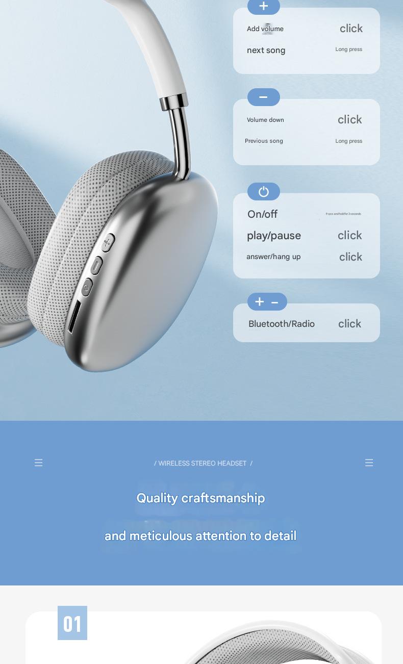 Auriculares inalámbricos Bluetooth supraaurales: graves profundos y sonido envolvente de 360° (compatibles con Apple P9)