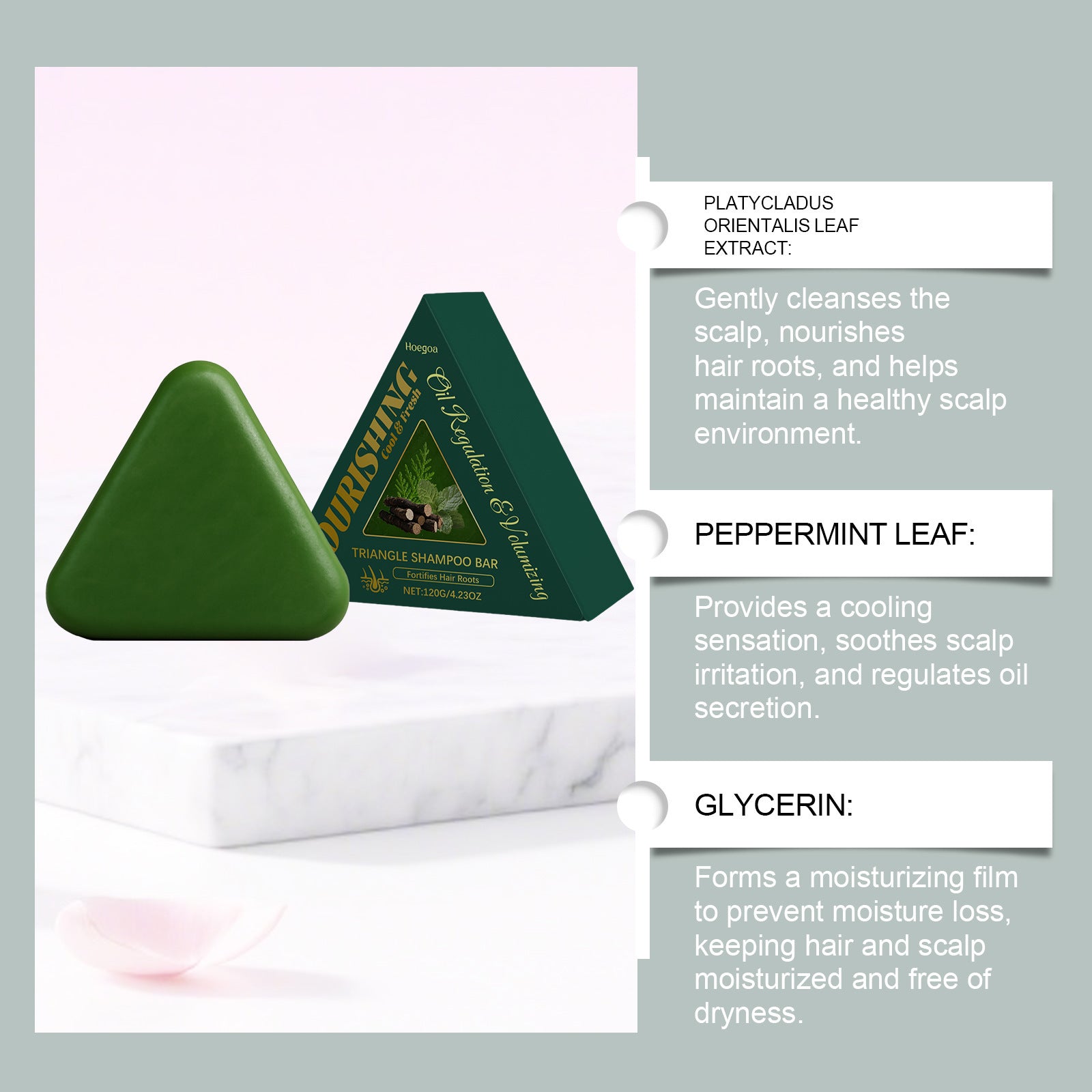 El champú sólido triangular nutritivo Hoegoa limpia y nutre el cabello, realzando su brillo natural. Enriquecido con potentes ingredientes herbales, este champú es perfecto para fortalecer las raíces del cabello y mantener el cuero cabelludo sano. Su forma triangular no solo es única, sino también práctica para viajes y uso diario.