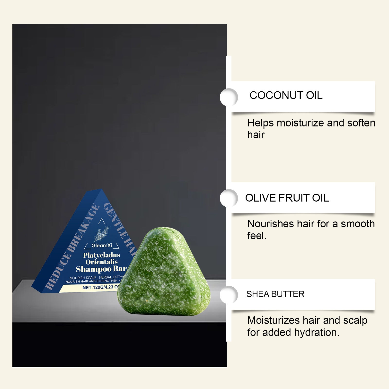 El champú sólido Platycladus Orientalis de GleamXi está diseñado para nutrir el cuero cabelludo y fortalecer el cabello. Elaborado con extractos de hierbas naturales, este champú sólido ayuda a reducir la rotura del cabello y promueve un cabello más suave y saludable. Su diseño compacto lo hace ideal para viajes o uso en casa, con un refrescante aroma a hierbas.