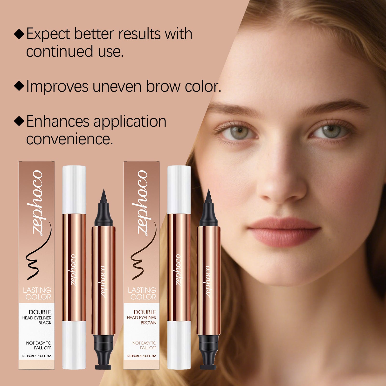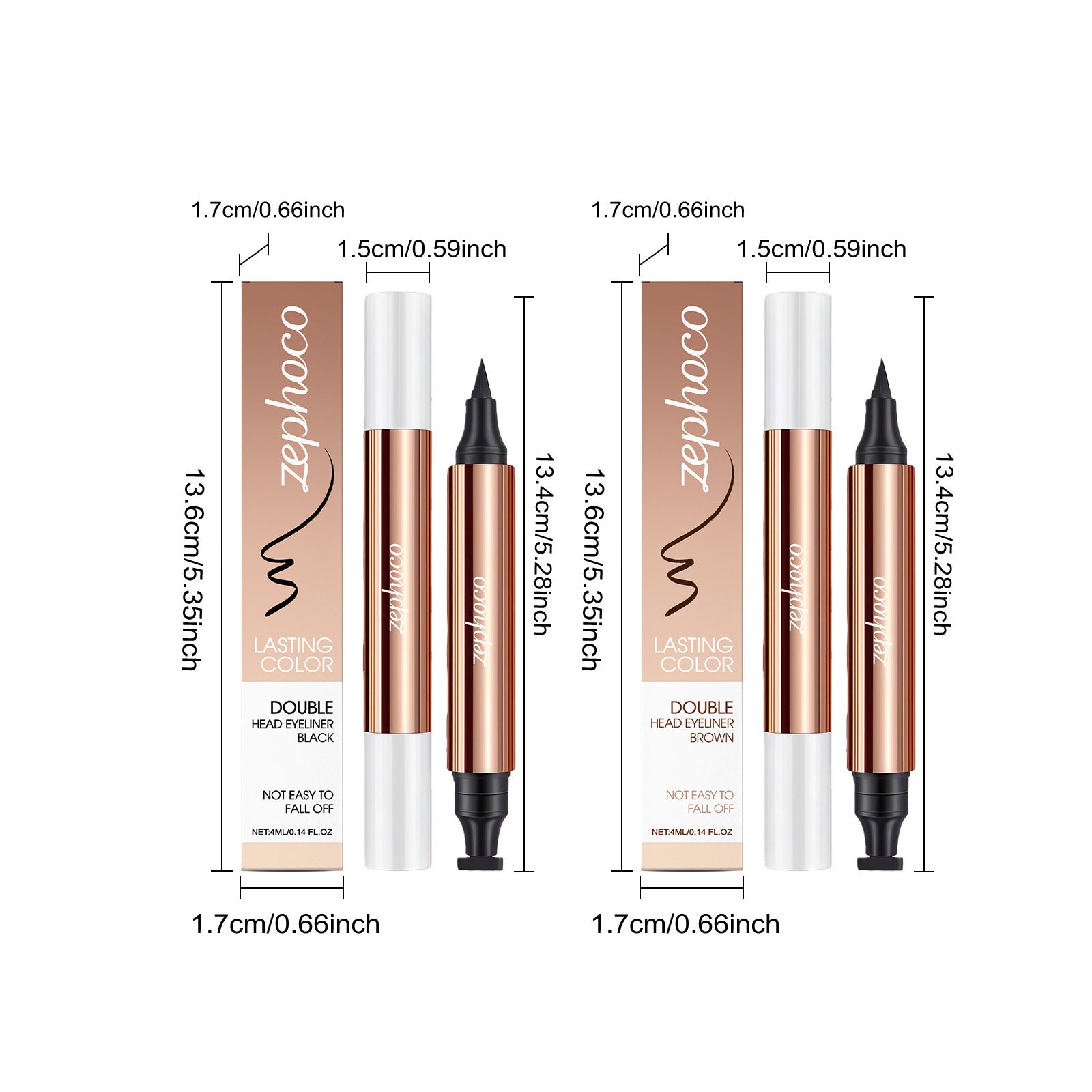 El delineador de ojos de doble cabeza Zephoco presenta un diseño de doble punta que permite una aplicación flexible para diferentes estilos de maquillaje de ojos.