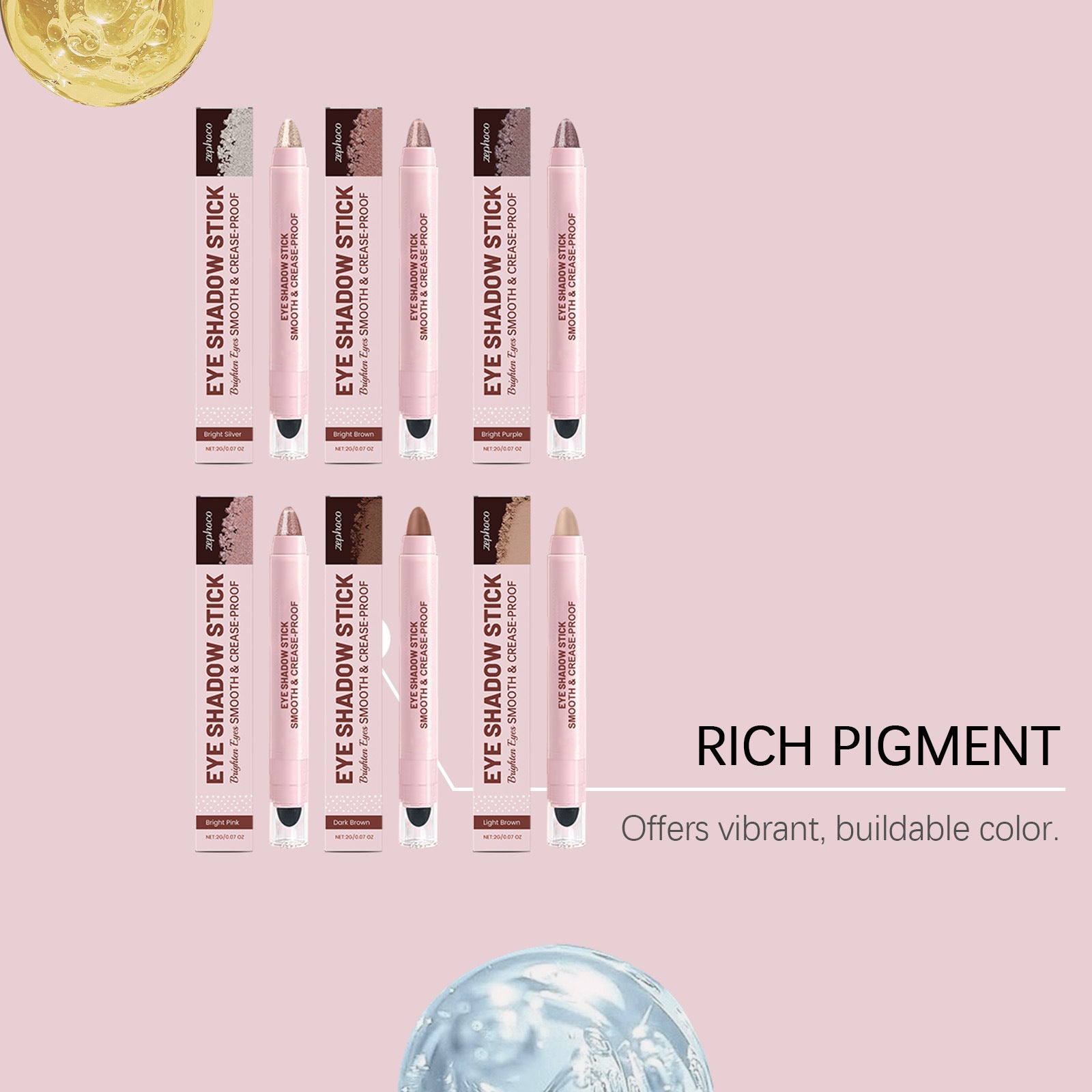 Sombra de ojos en barra multiusos Zephoco: fórmula de mezcla suave, duradera y que no se corre.