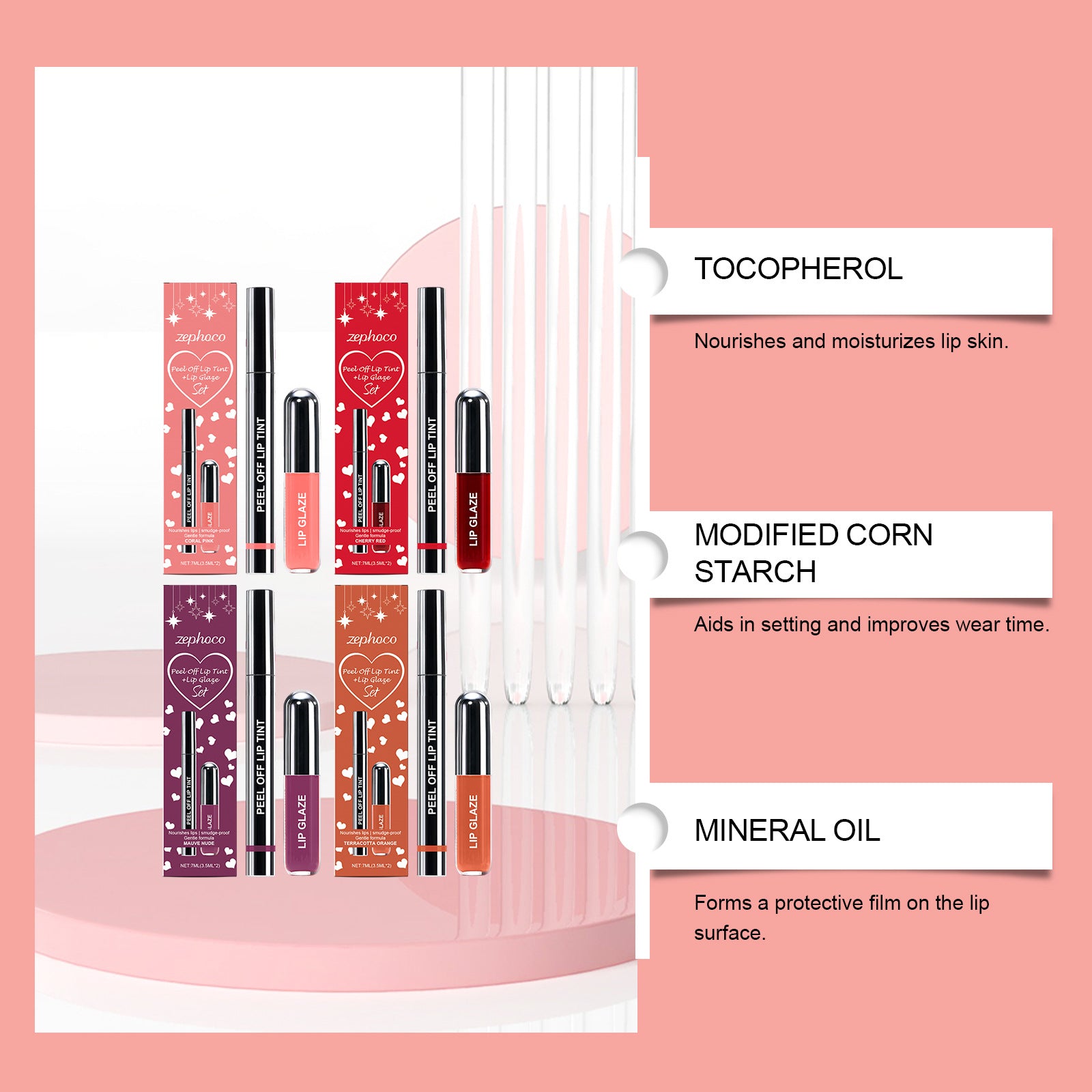 Set de tinte y brillo labial Zephoco Peel-Off: color de larga duración en varios tonos