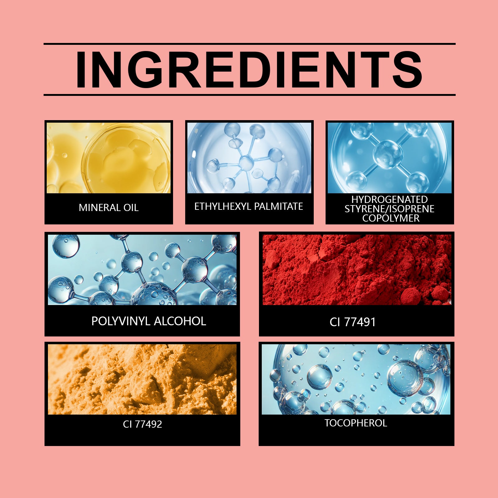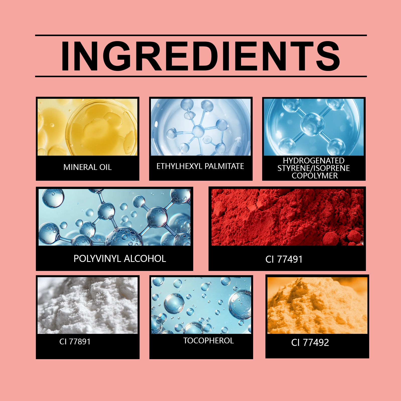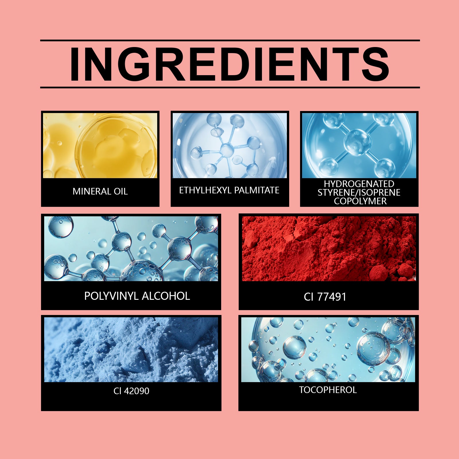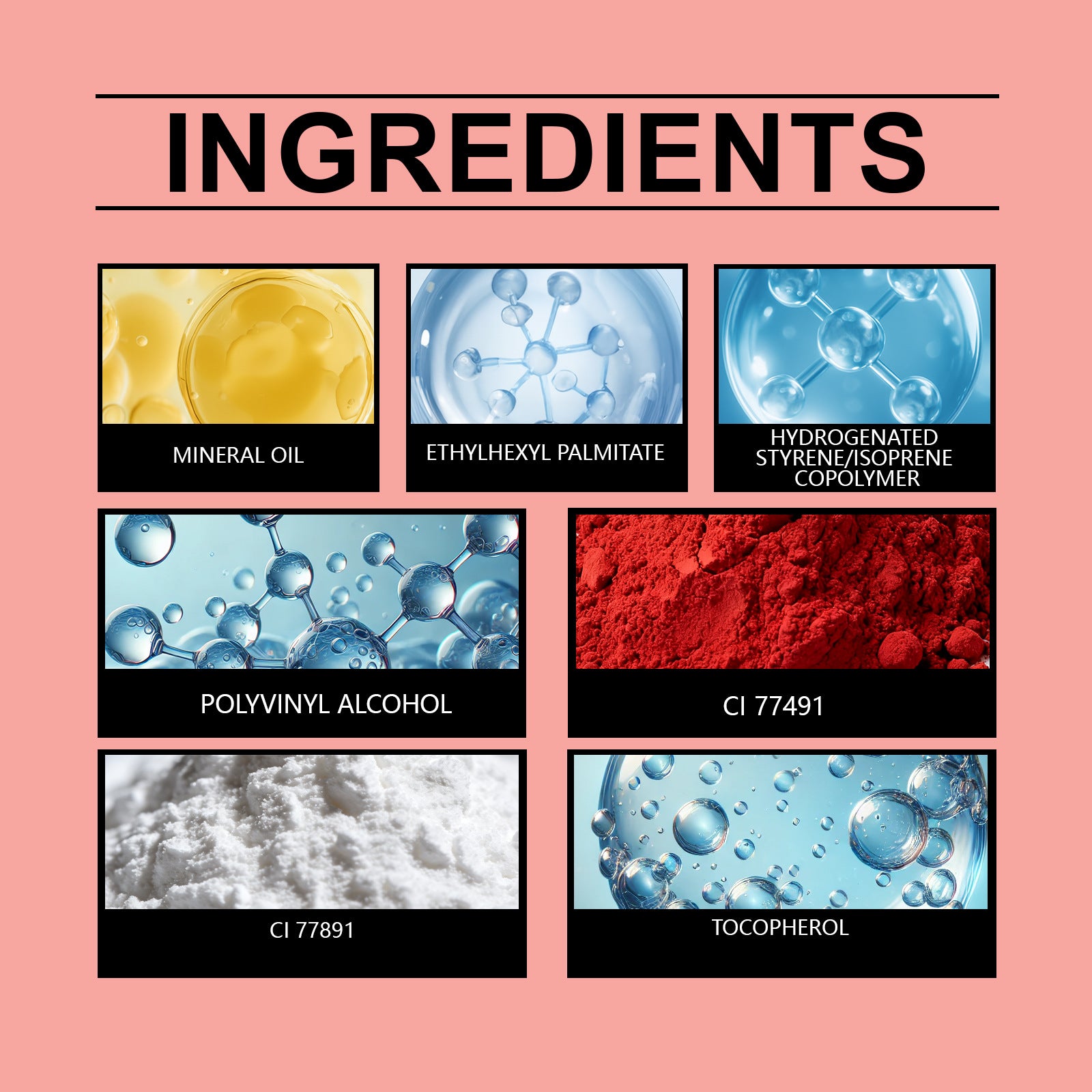 El tinte labial despegable ofrece un acabado de color limpio y uniforme, mientras que el esmalte de labios agrega un brillo suave para una apariencia completa.