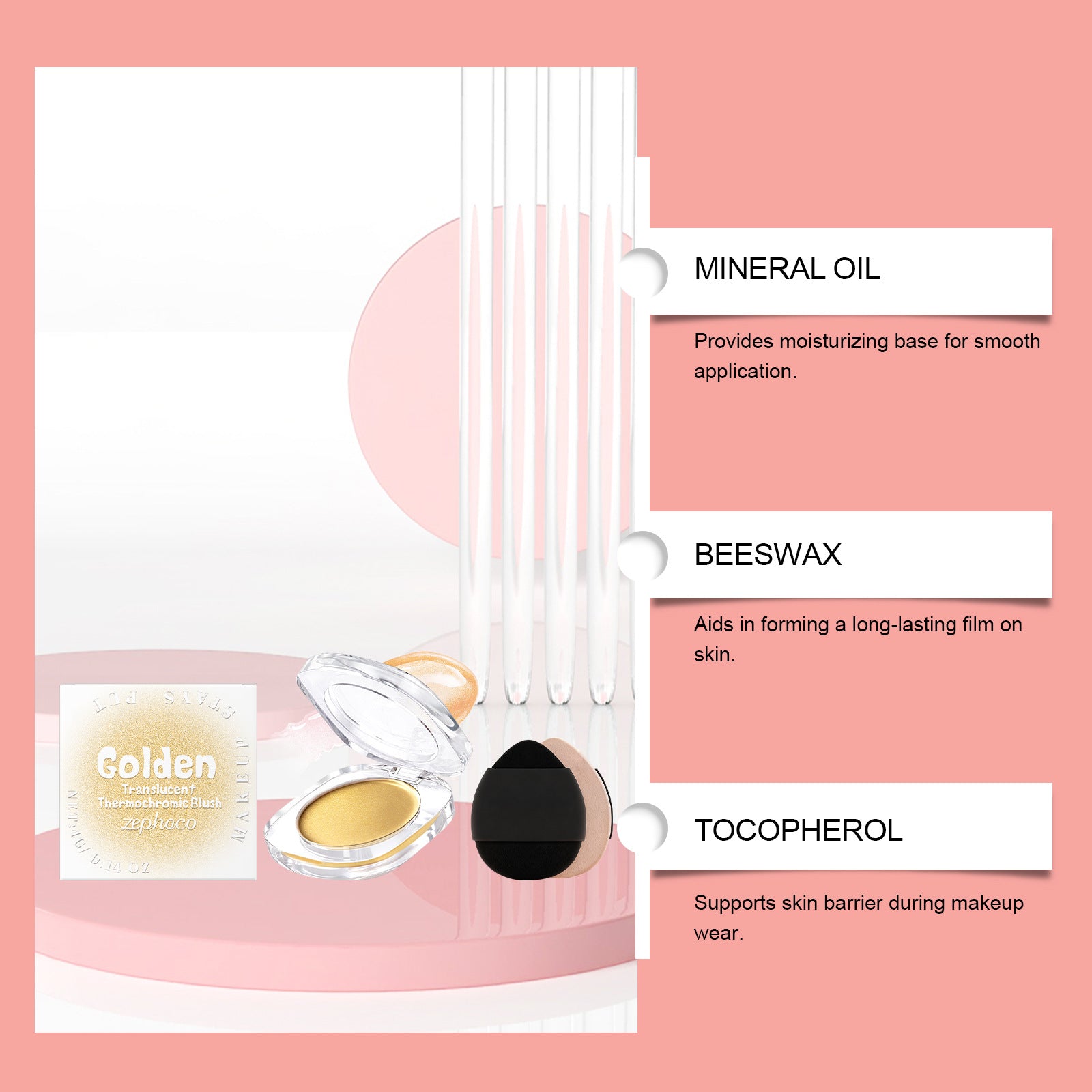 El rubor en crema translúcido dorado Zephoco está diseñado para agregar un brillo suave y luminoso a la piel con una textura suave y cremosa.