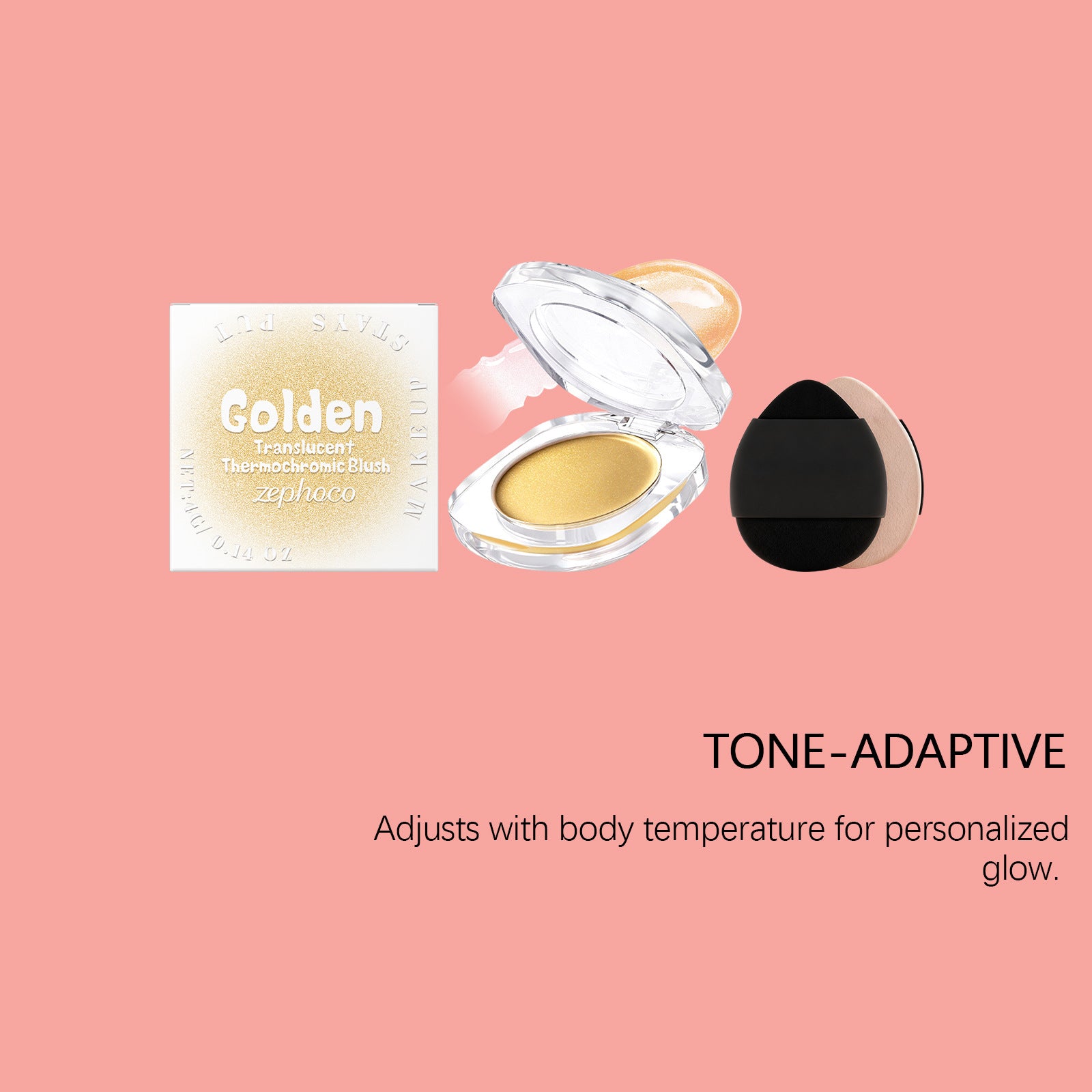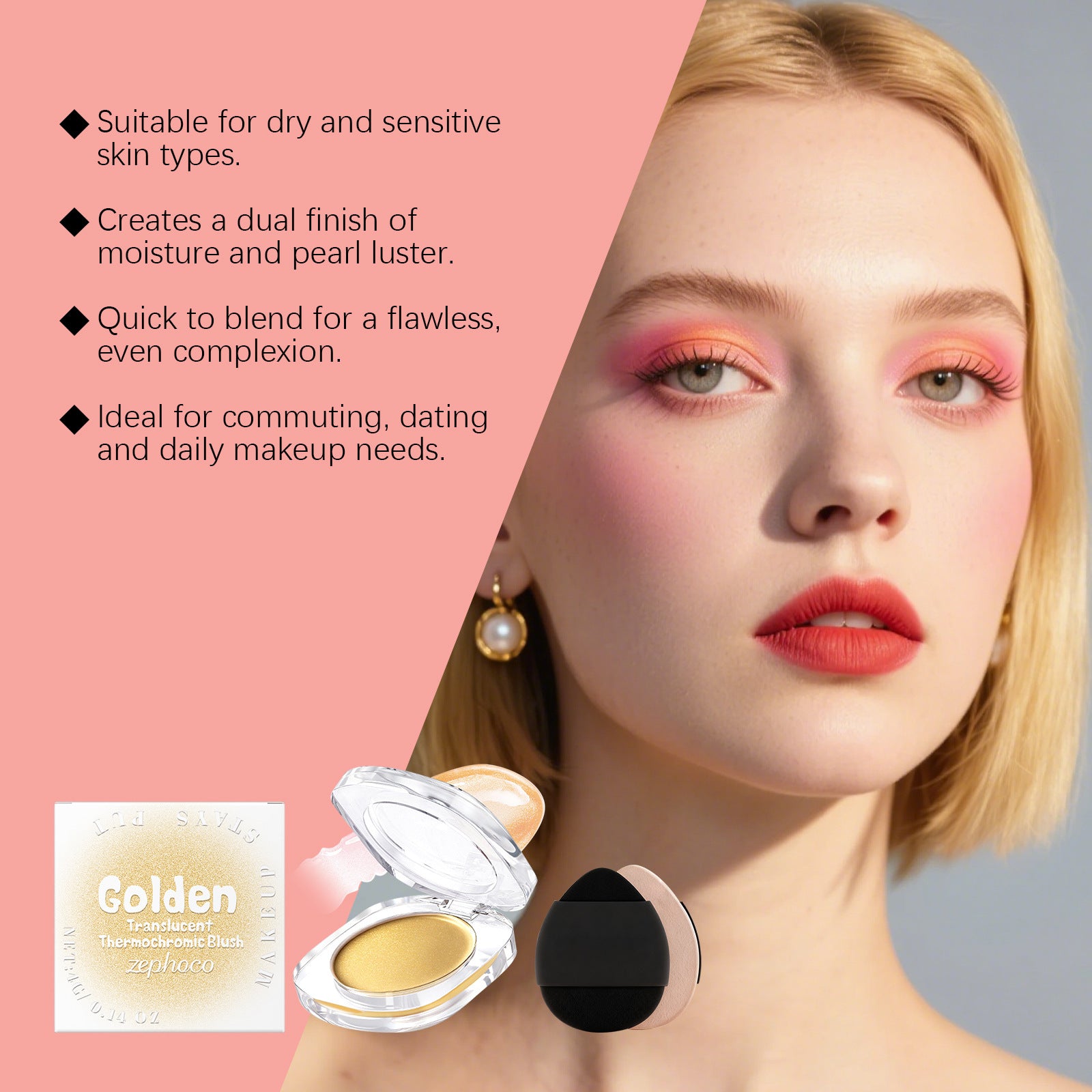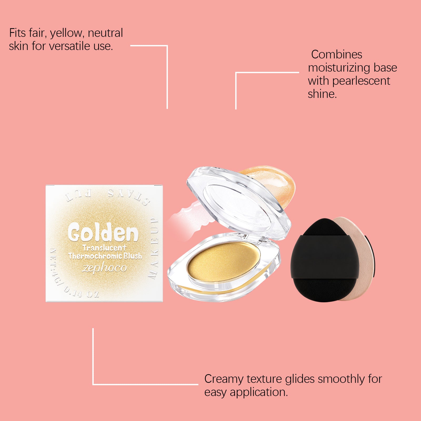 Rubor en crema translúcido dorado Zephoco: brillo perlado y acabado suave