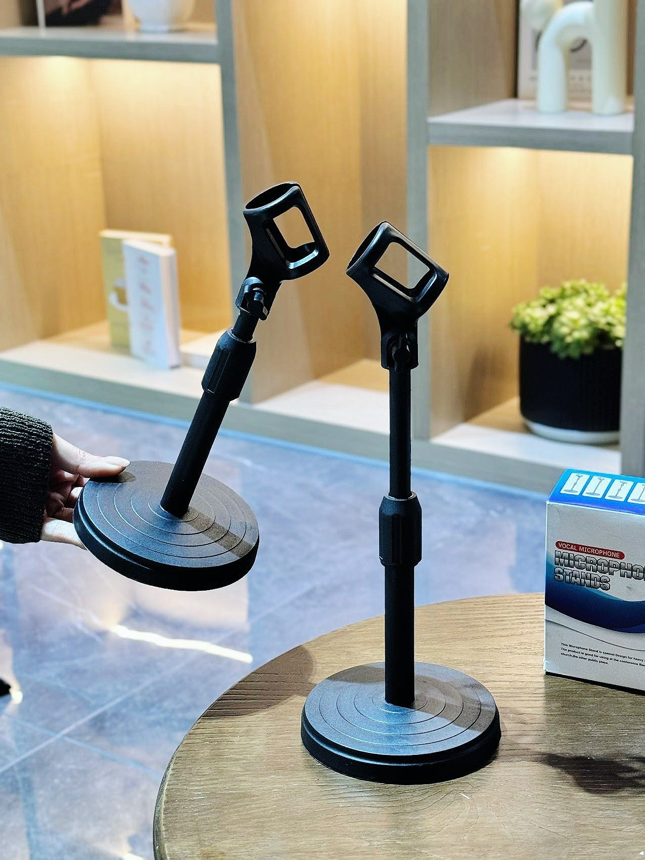 Son format compact permet de gagner de la place sur le bureau tout en offrant un support fiable. Il convient aux studios à domicile, aux configurations de diffusion en direct, aux cours en ligne et aux séances de chant informelles.