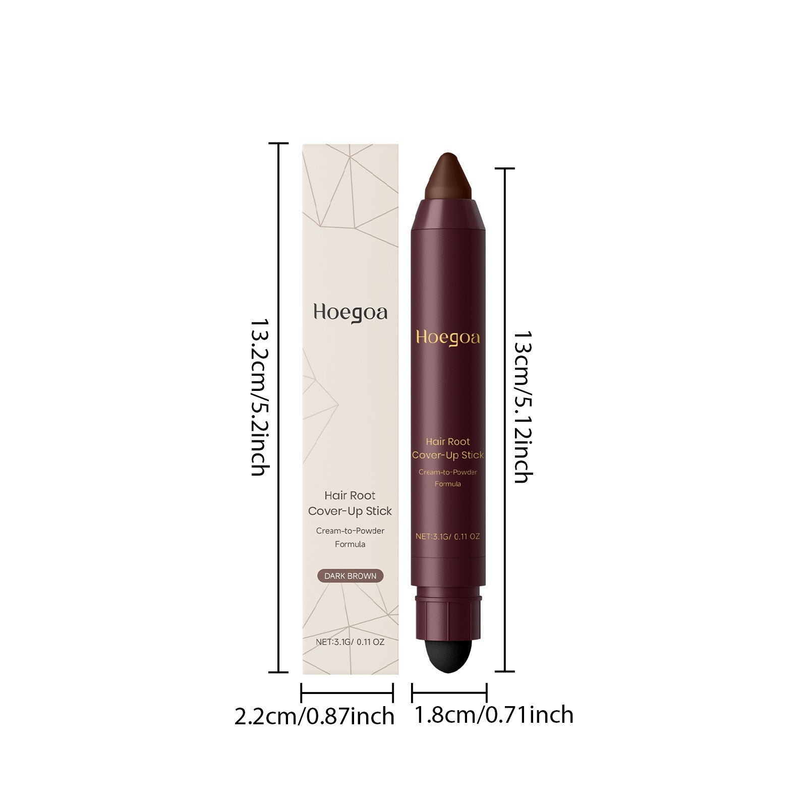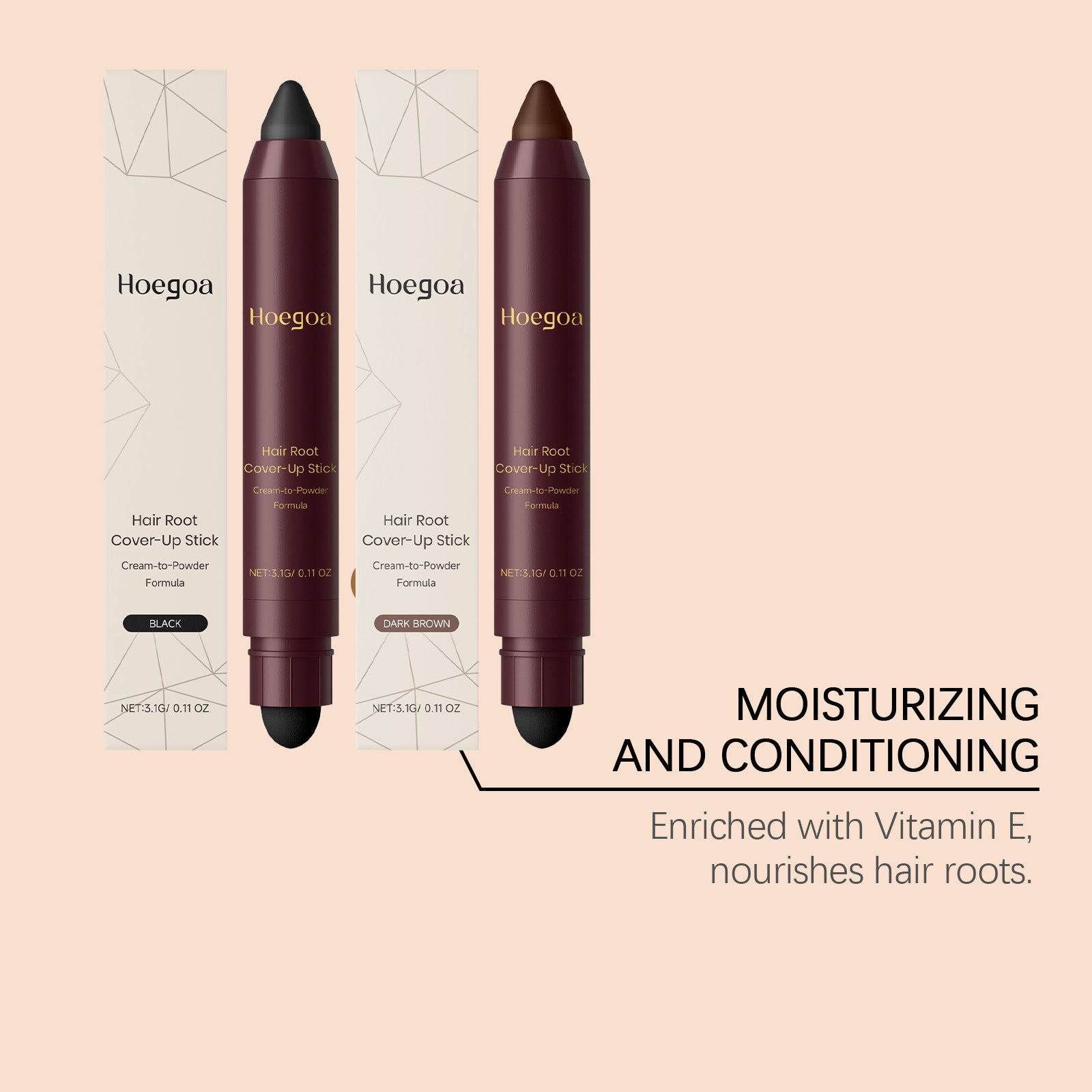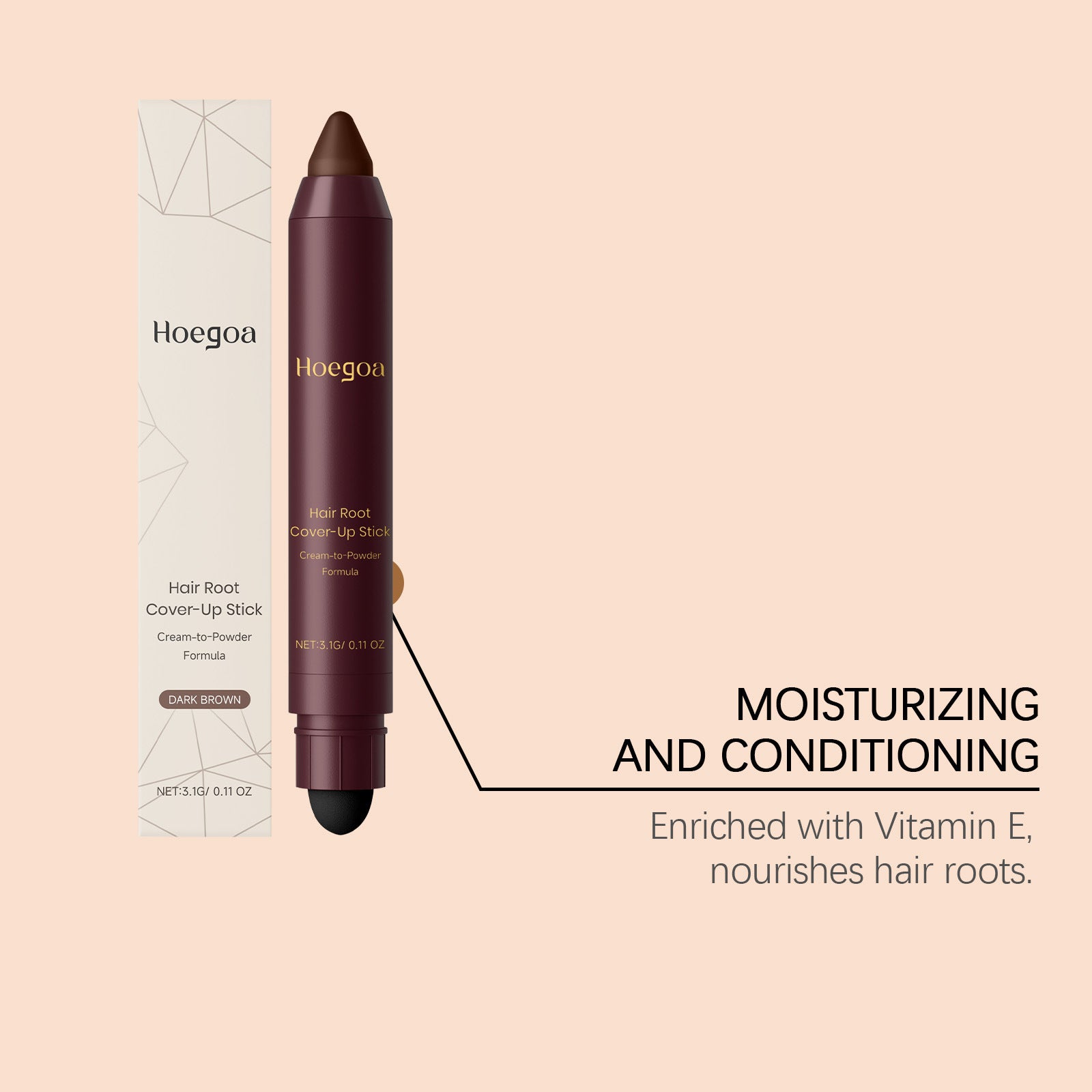 Le stick correcteur de racines Hoegoa est conçu pour camoufler rapidement et efficacement les racines apparentes et les zones grises. Sa formule crème-poudre s'applique facilement et offre une couvrance uniforme qui se fond naturellement à la couleur des cheveux. Son format stick permet une application précise et est idéal à la maison comme en voyage.