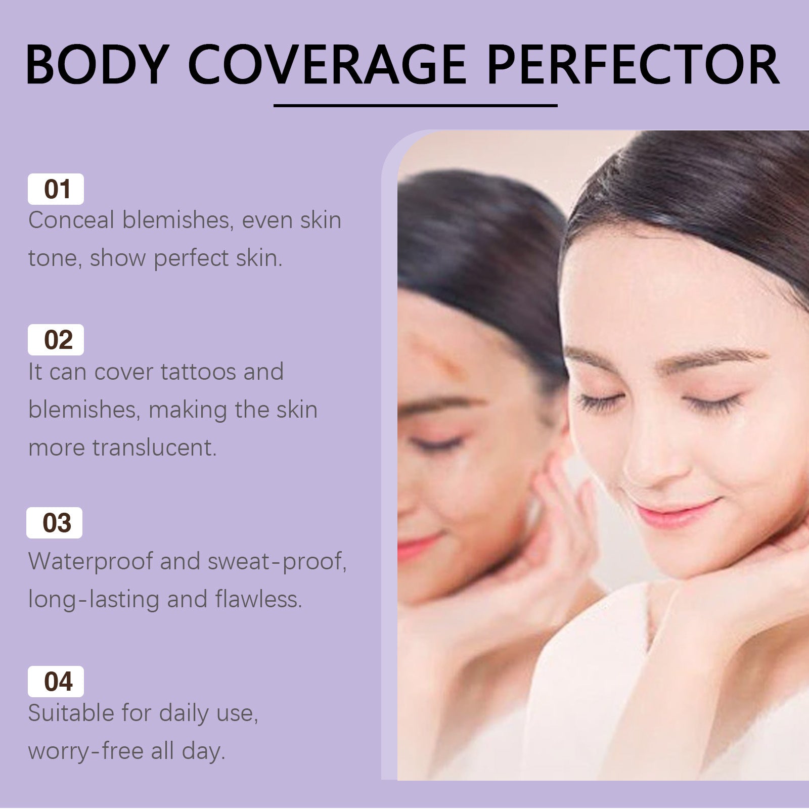 Suitable for use on arms, legs, shoulders, and other visible areas, this body concealer works well for special occasions, photos, and everyday confidence.