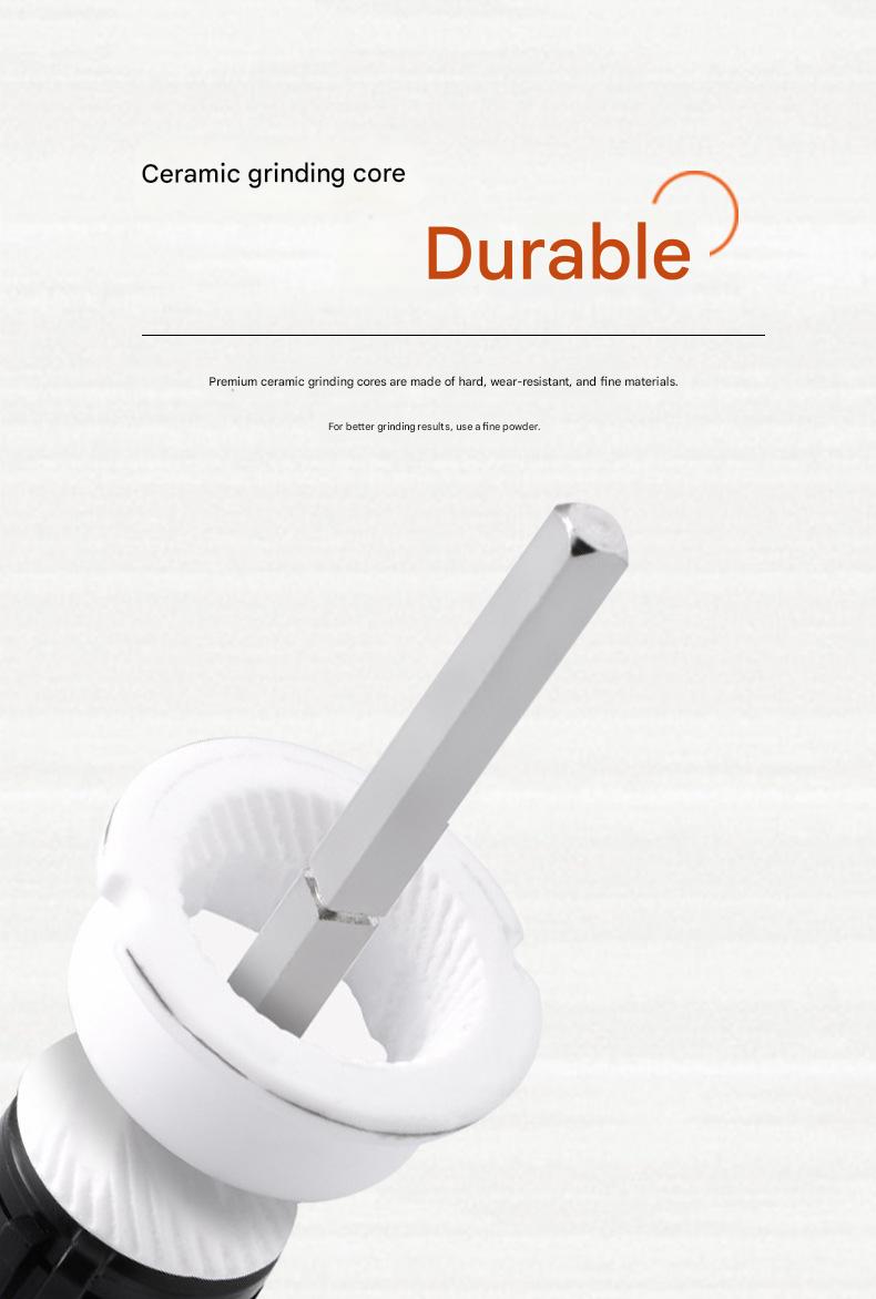 The ceramic grinding core provides smooth and consistent results, while the transparent viewing window lets you check seasoning levels at a glance. The rechargeable Type-C design offers everyday convenience without the need for disposable batteries, making it suitable for regular kitchen use.