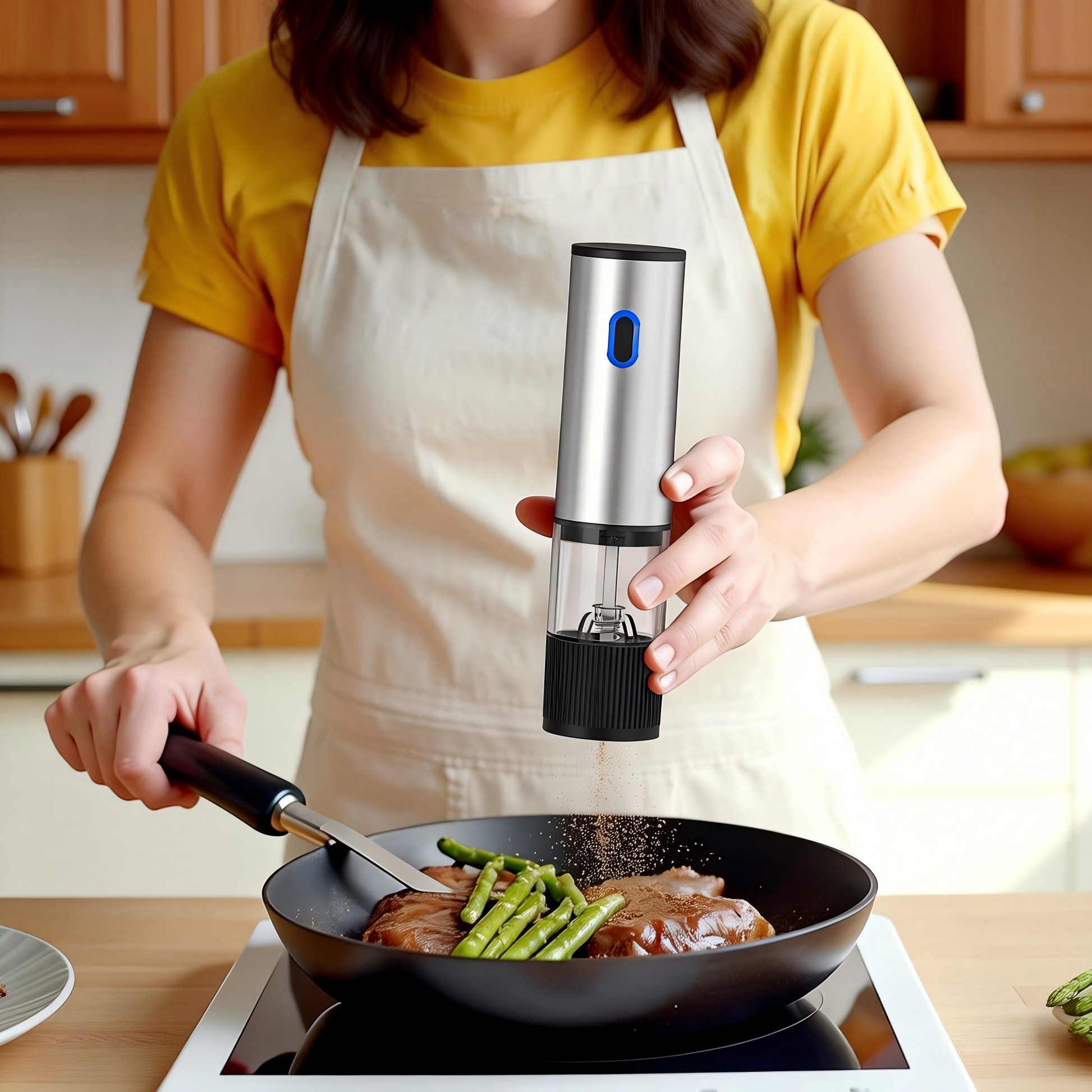 Electric Pepper Grinder – Rechargeable Stainless Steel Salt & Spice Mill with Adjustable Coarseness