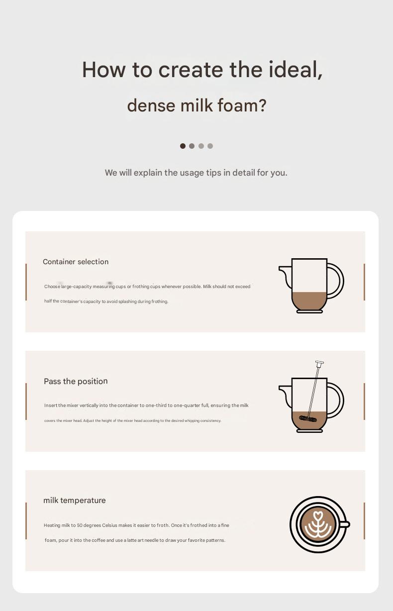 The handheld design is lightweight and easy to handle, while the compact size allows for convenient storage or travel use. In addition to milk frothing, it can be used for mixing cream, eggs, and other liquids, making it a practical kitchen accessory.