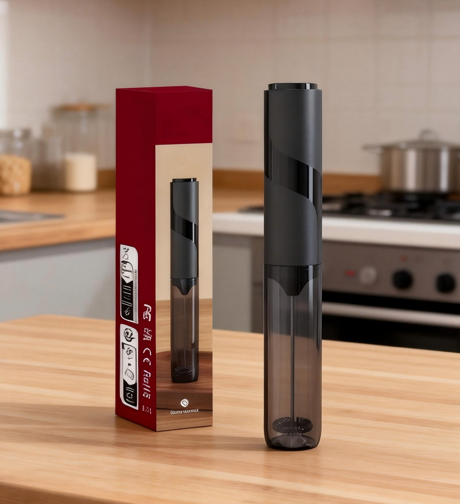 This electric milk frother is designed to support everyday coffee preparation and basic kitchen tasks. With a motor designed for efficient performance and a stainless steel whisk, it is suitable for creating milk foam for beverages such as lattes, cappuccinos, and milk tea.