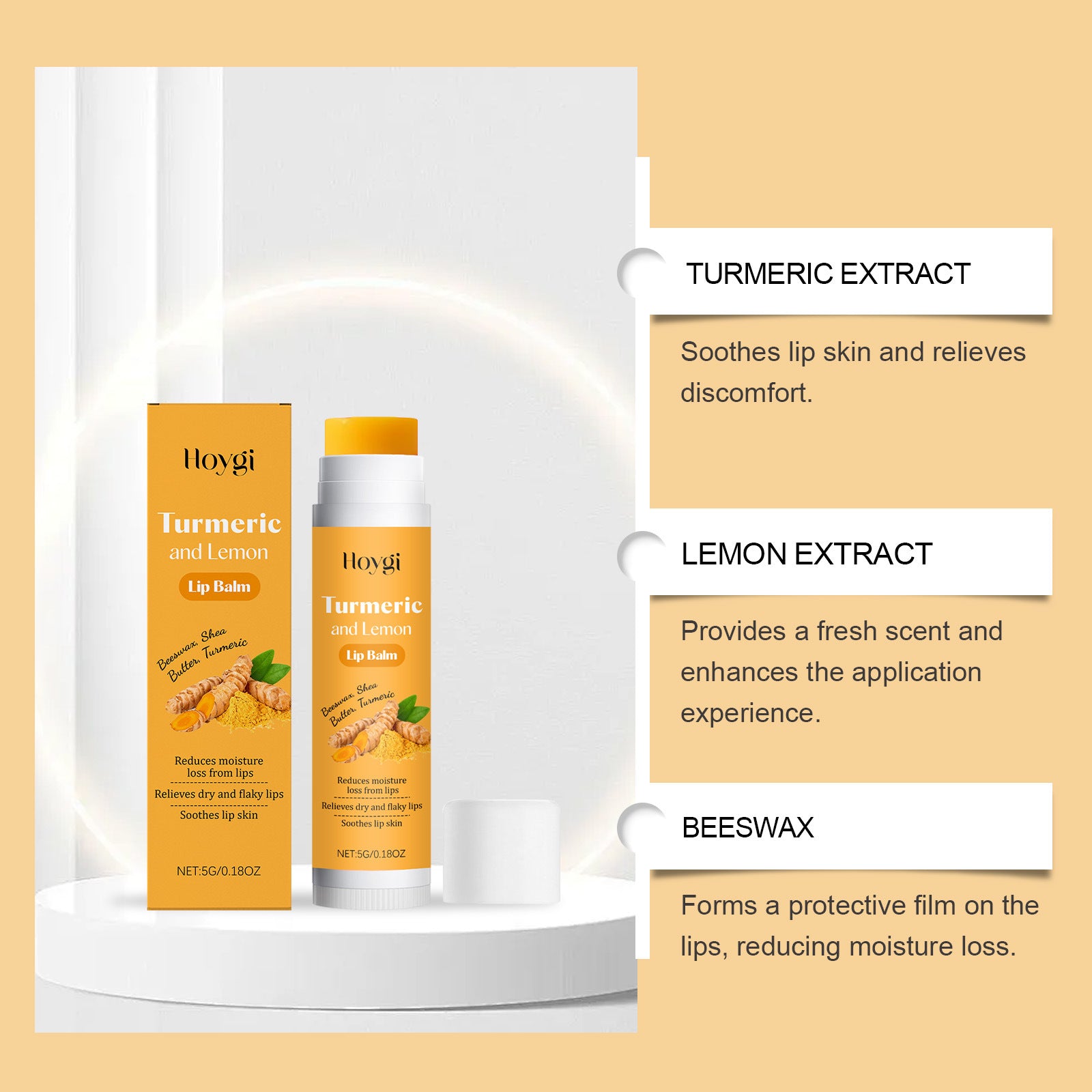 Hoygi Turmeric & Lemon Lip Balm – Smooth, Lightweight & Daily Moisturizing (5g)