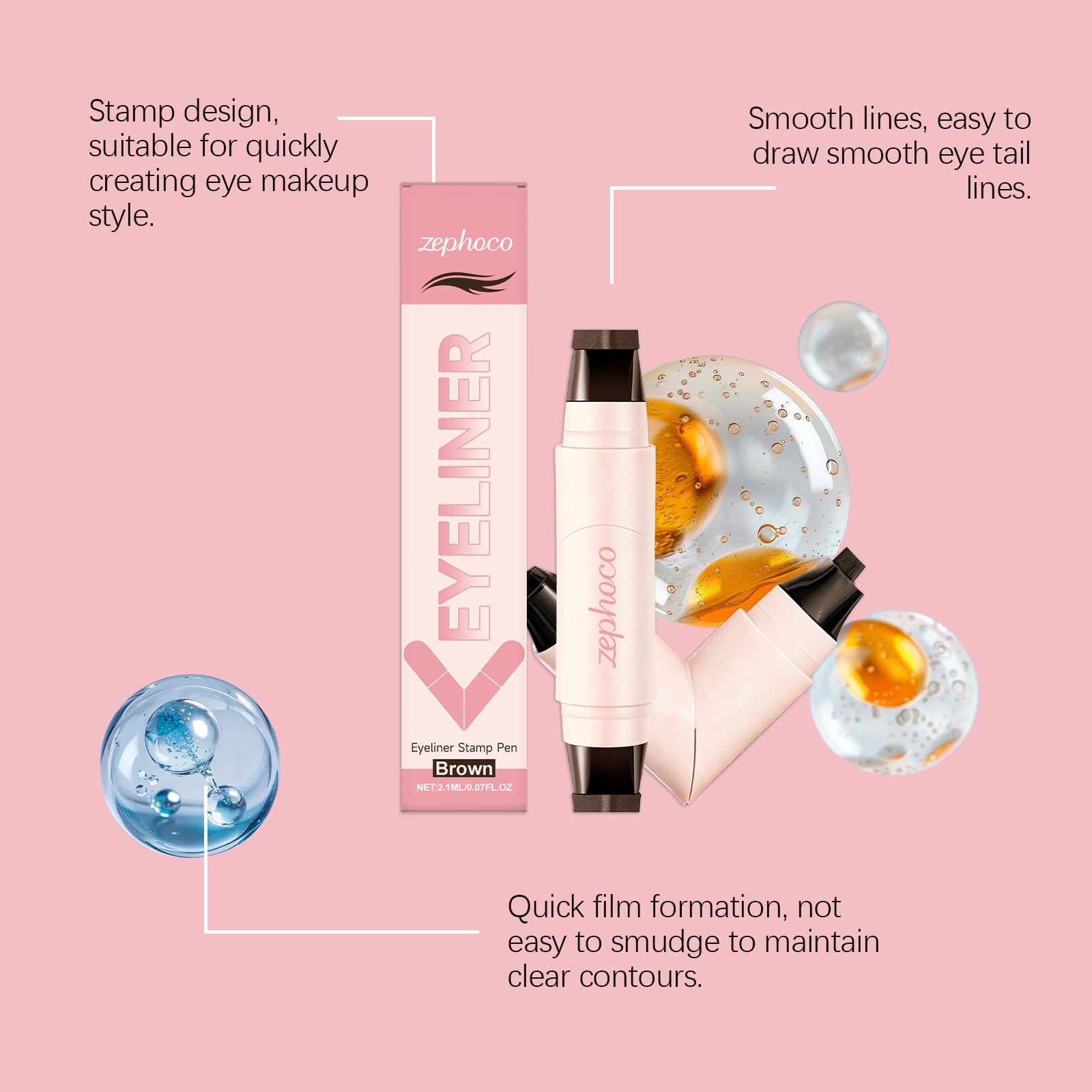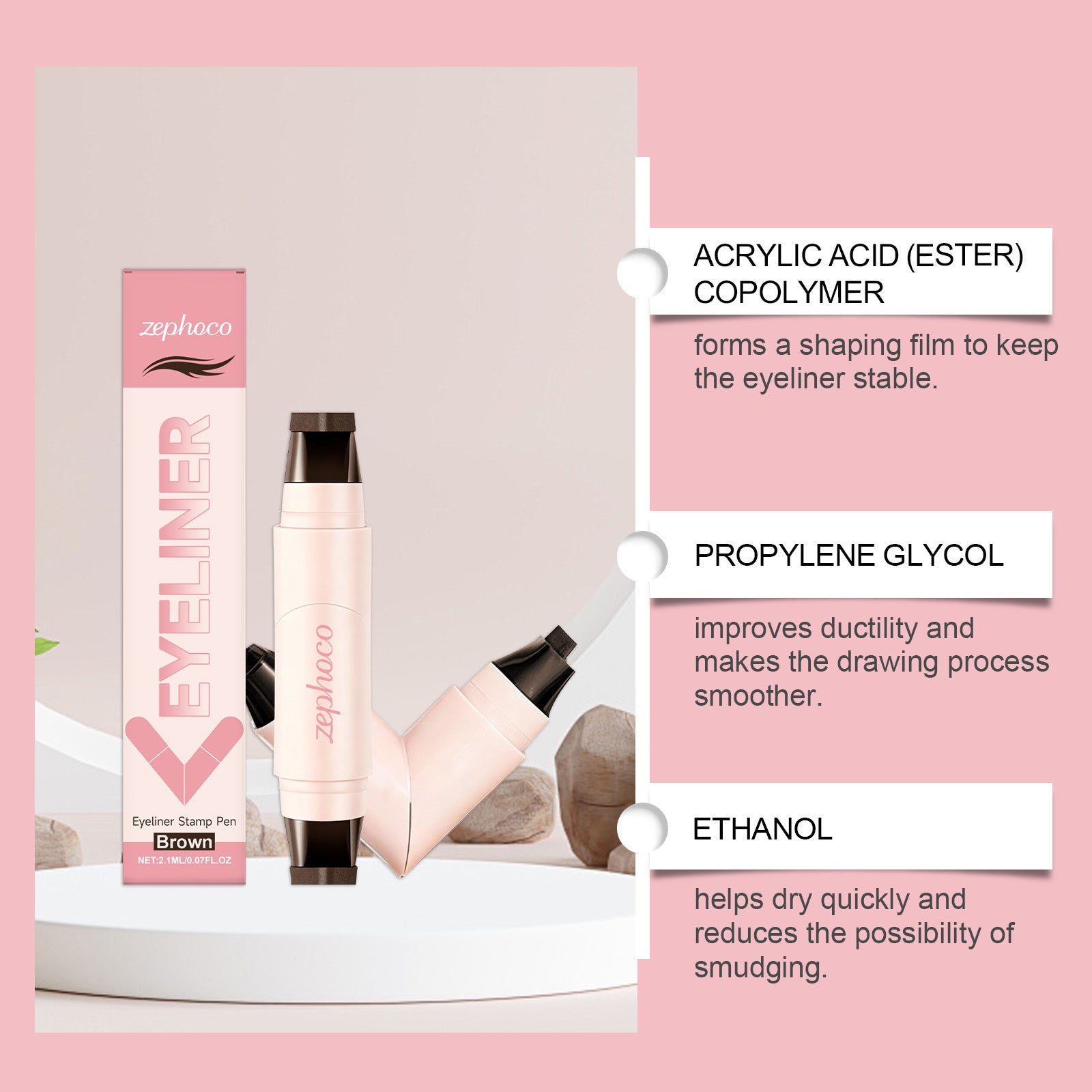 The Zephoco Eyeliner Stamp Pen is designed to help create clean eye makeup looks efficiently and with ease.