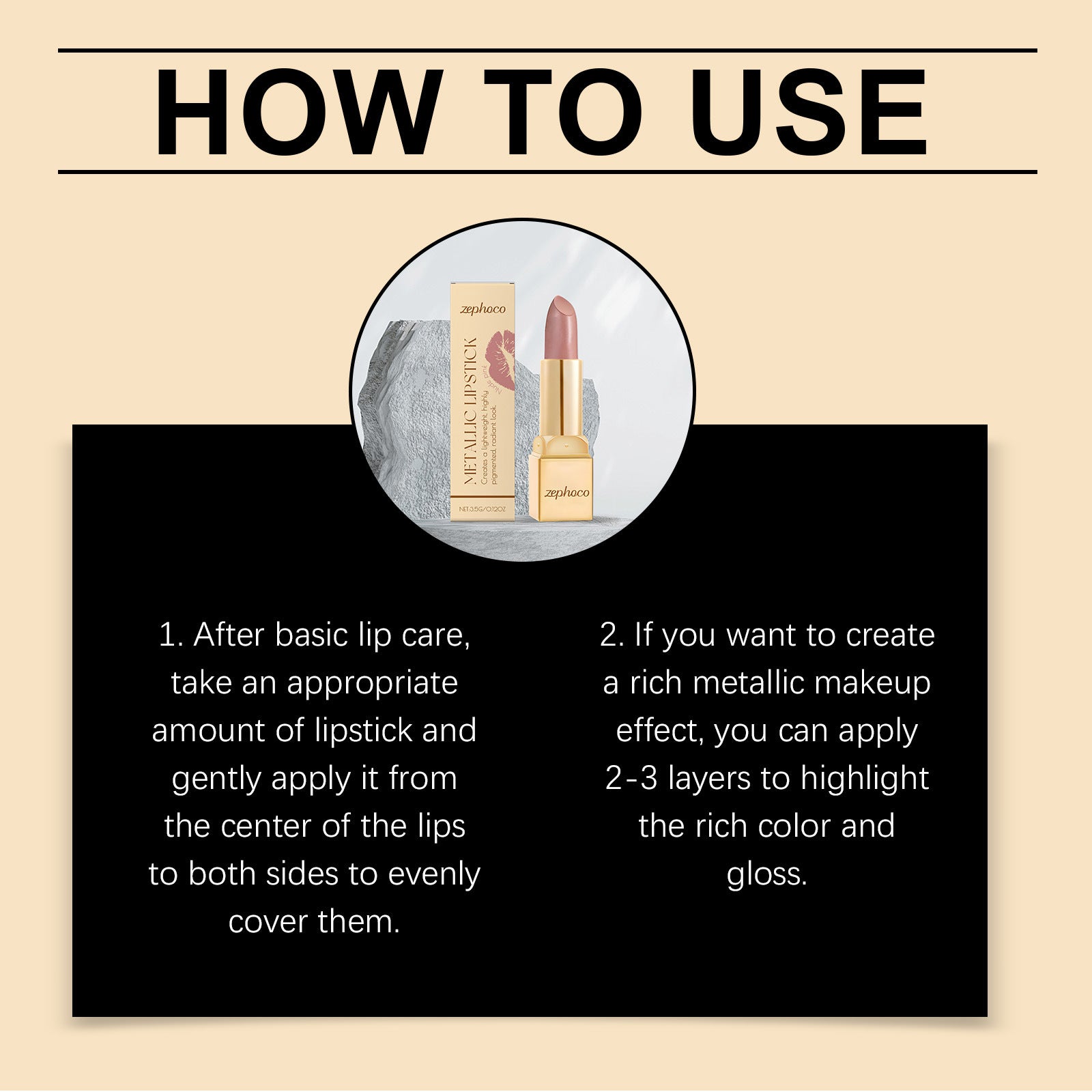 Zephoco Metallic Lipstick – Smooth Color & Radiant Finish (Multiple Shades)
