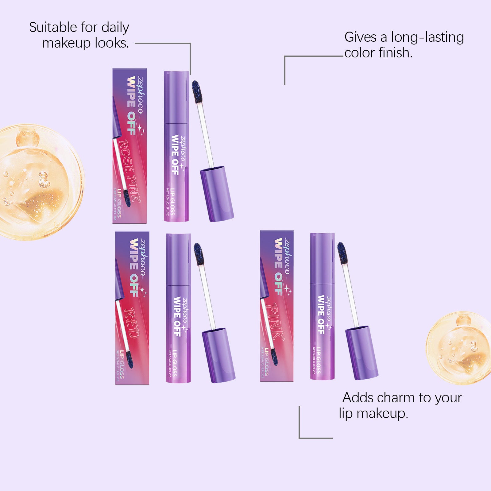 Zephoco Wipe Off Lip Gloss – Long-Lasting Color with a Lightweight Finish