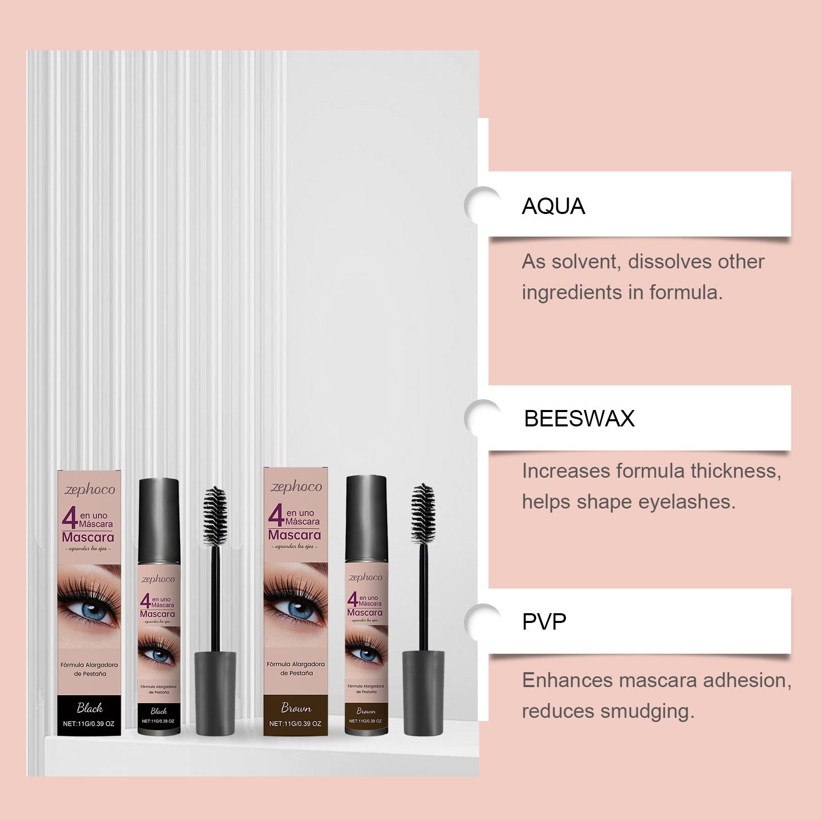 Zephoco 4-in-1 Lengthening & Volumizing Mascara (Black / Brown)