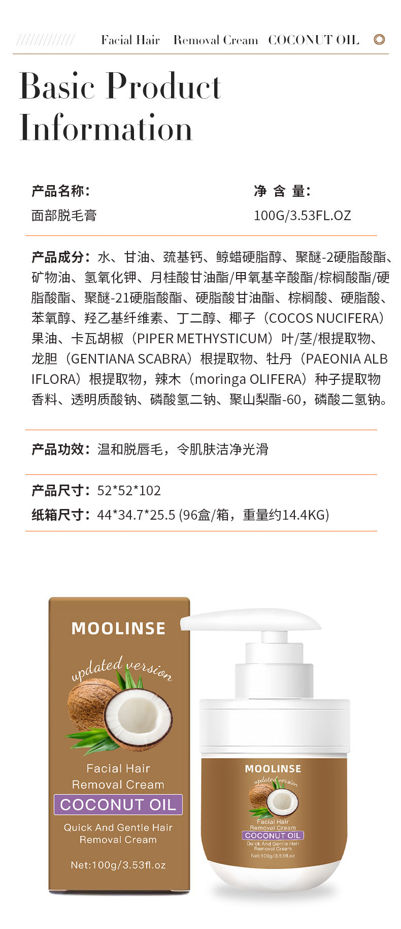 TikTok Hot Sell Coconut Oil Facial Hair Removal Cream – Gentle & Painless Smooth Skin